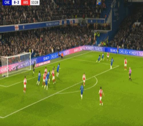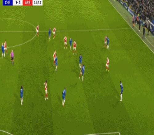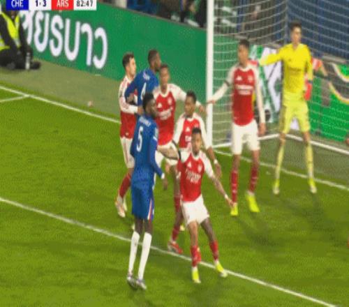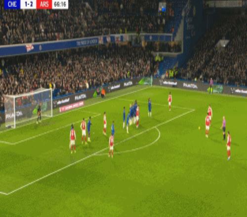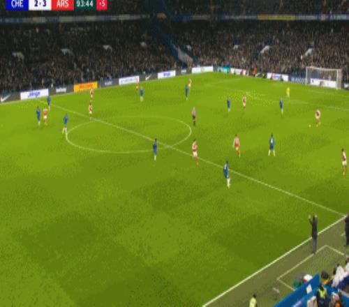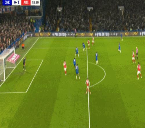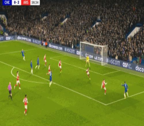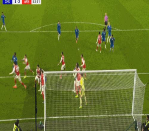 第83分鐘,加納喬二點迎球凌空破門梅開二度,切爾西2-3!